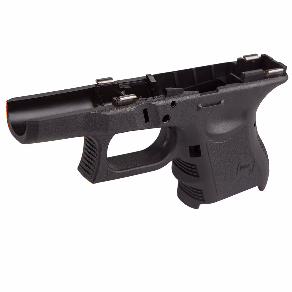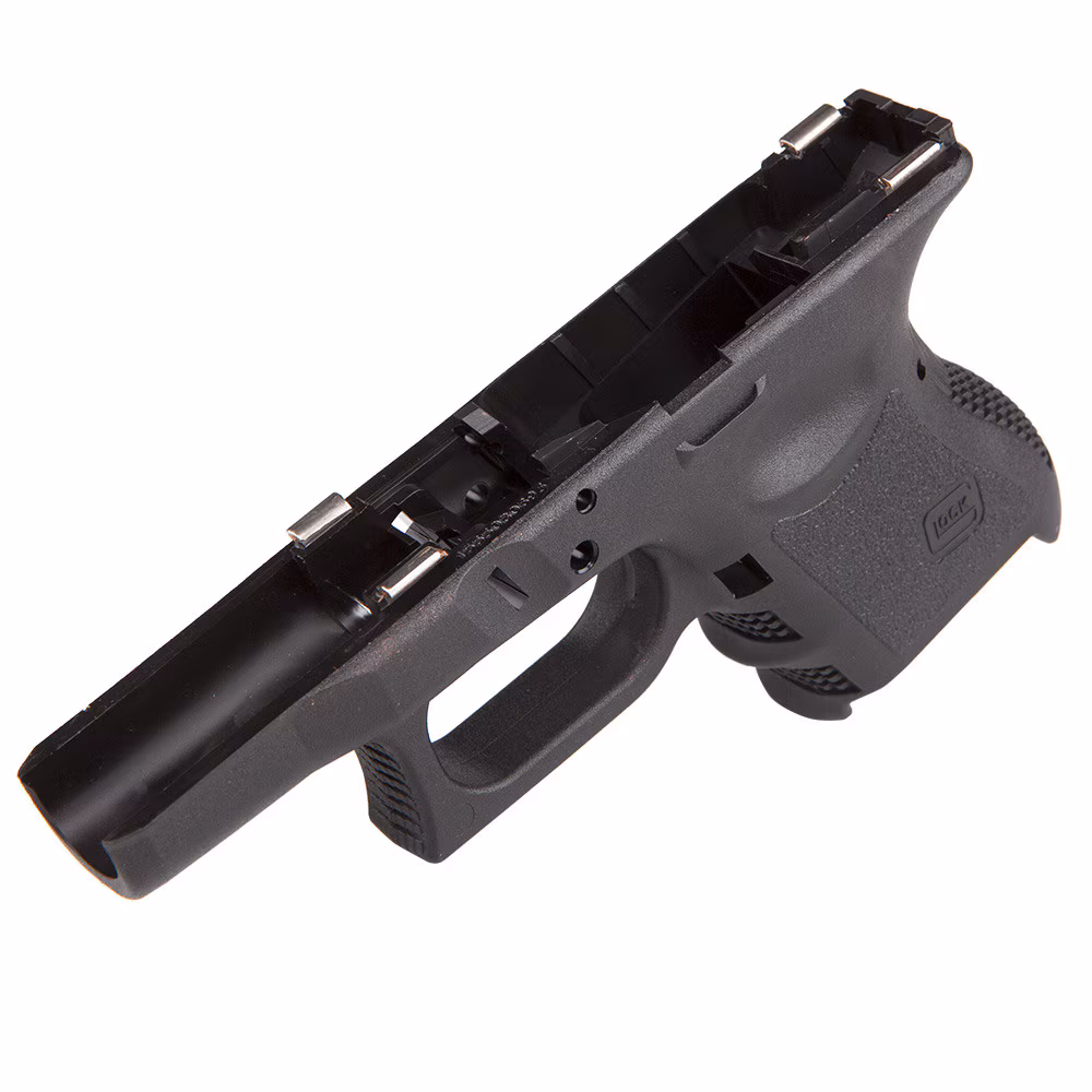 The Glock 27 Gen 3 Frame is molded from Glock’s proprietary high-strength polymer, designed to withstand the sharper recoil impulse of .40 S&W while remaining compact and lightweight. The frame incorporates molded steel slide rails, pin bosses, and correct geometry to support Glock 27 Gen 3 slides, locking blocks, and lower parts kits (LPK).